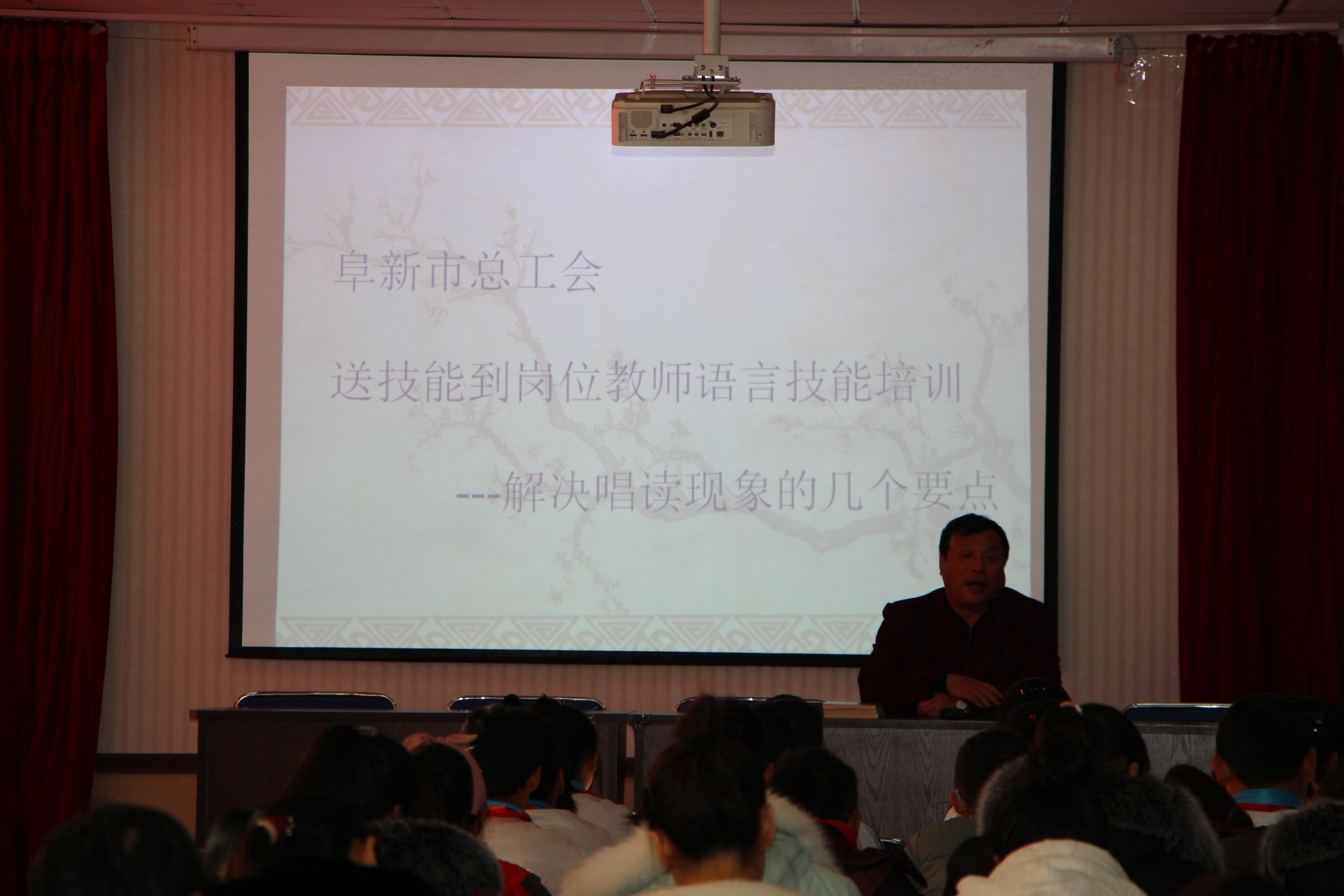 11月29日,学校邀请到彰武电大学校郑校长来我校为35周岁以下青年教师和语文教师就学生朗读的技巧和解决学生唱读现象的几个要点,作了一场生动的培训。