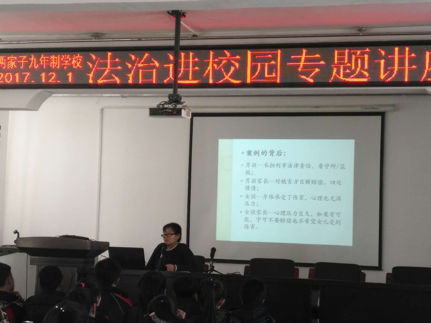 学校利用电子屏幕及宣传栏等进行了各种形式的法制宣传教育,提高了青少年的法制观念和法制实践能力。